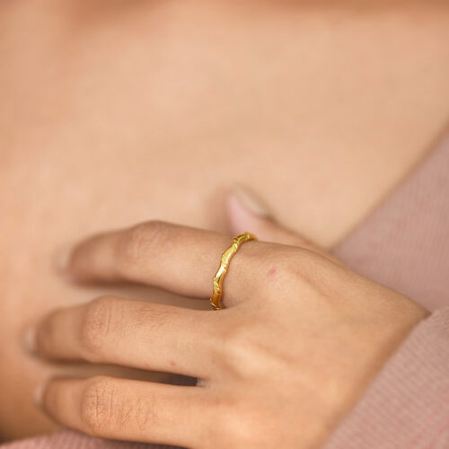 This golden ring draws inspiration from the elegance of bamboo shoots, with subtle, organic patterns that wrap around your finger like nature’s own design. A symbol of strength and serenity, it balances minimalism with earthy sophistication, making it a timeless piece for everyday grace.