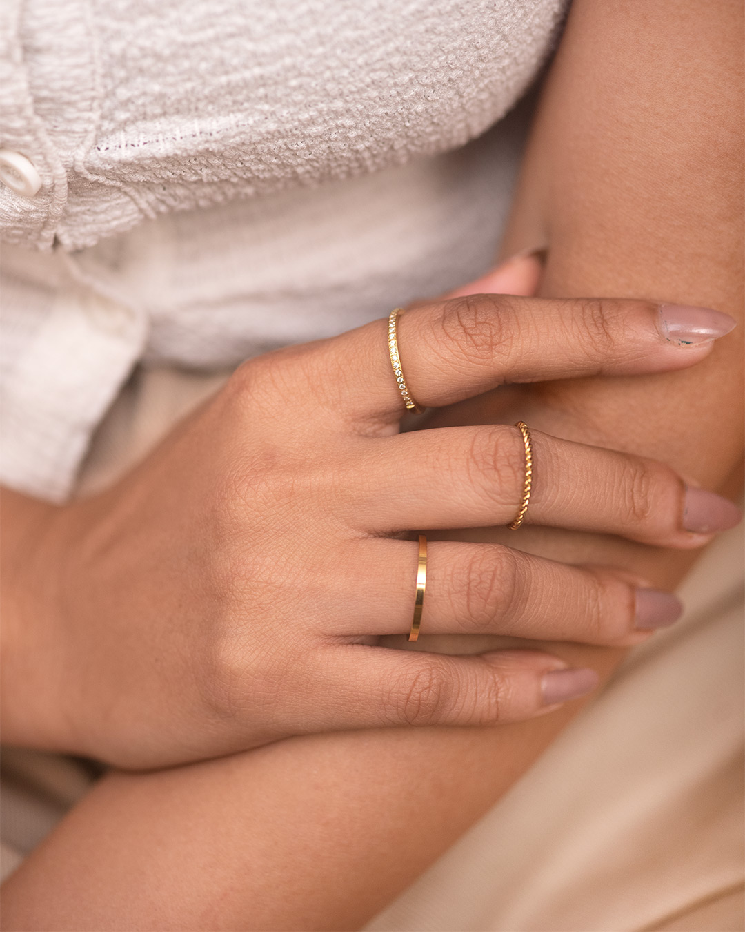 Featuring a flat surface with crisp edges, this gold ring reflects light beautifully with every movement. Modern and minimal everyday ring.