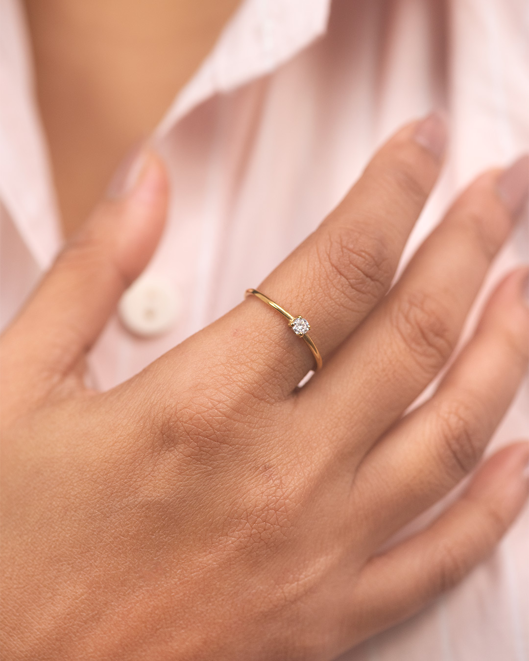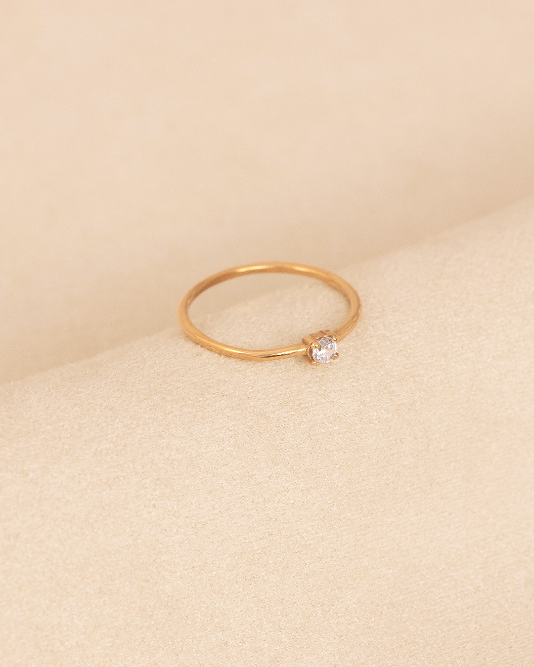 A fine gold band finished with a small, single circular stone at the center. Simple and softly luminous, it adds a balanced touch of light that feels easy and refined.