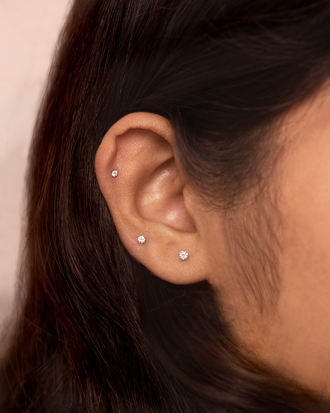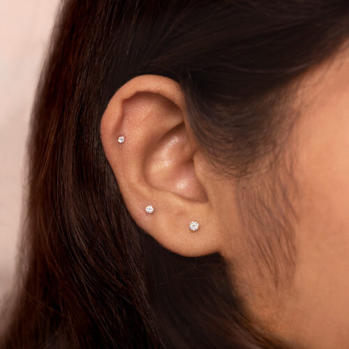 The Luxo is a tiny stud featuring a single round clear stone set at the front. Its clean, minimal design makes it versatile—perfect for the main lobe, upper lobe, helix, other upper-ear piercings, and as a nose stud. Made from titanium, it’s also ideal for new piercings.