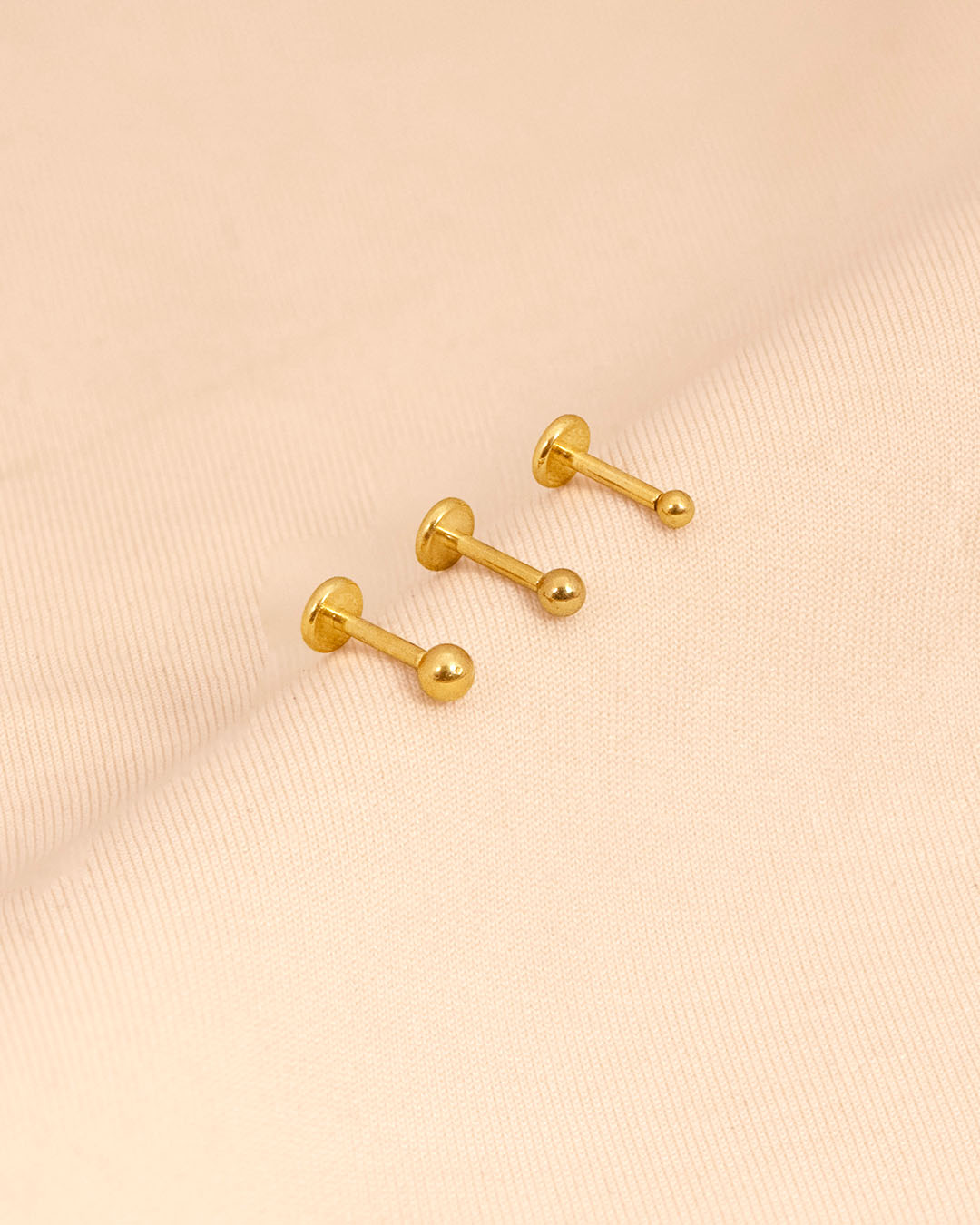 A polished, micro-sized metal sphere that sits flat against the skin. Minimal and understated, it works beautifully as either a helix stud or a delicate nose pin.
