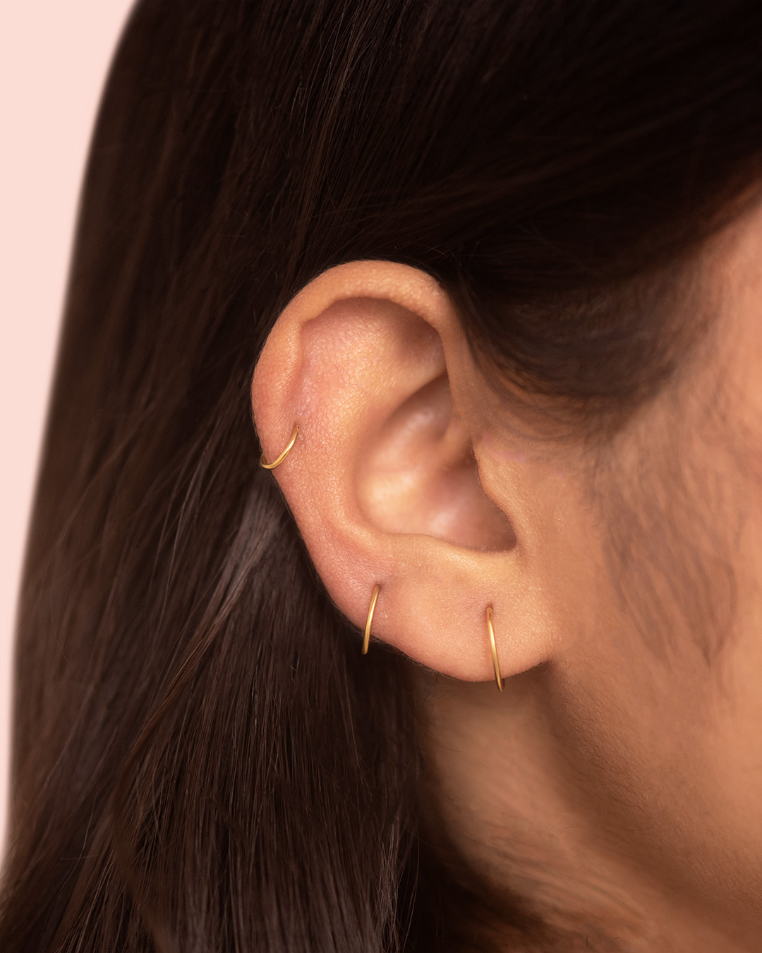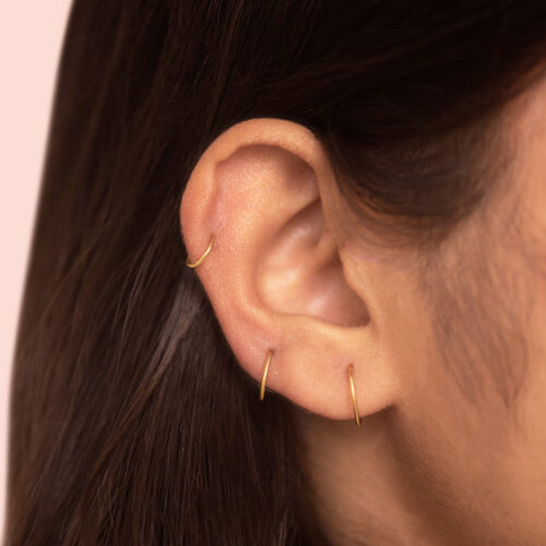 A lightweight, polished hoop with a fine, delicate thickness. Its minimal look makes it easy to pair with other jewelry, suitable for the main lobe, upper lobe, helix, other upper ear piercings, or as a sleek nose ring. Please check the size guide below to ensure you get your desired fit.