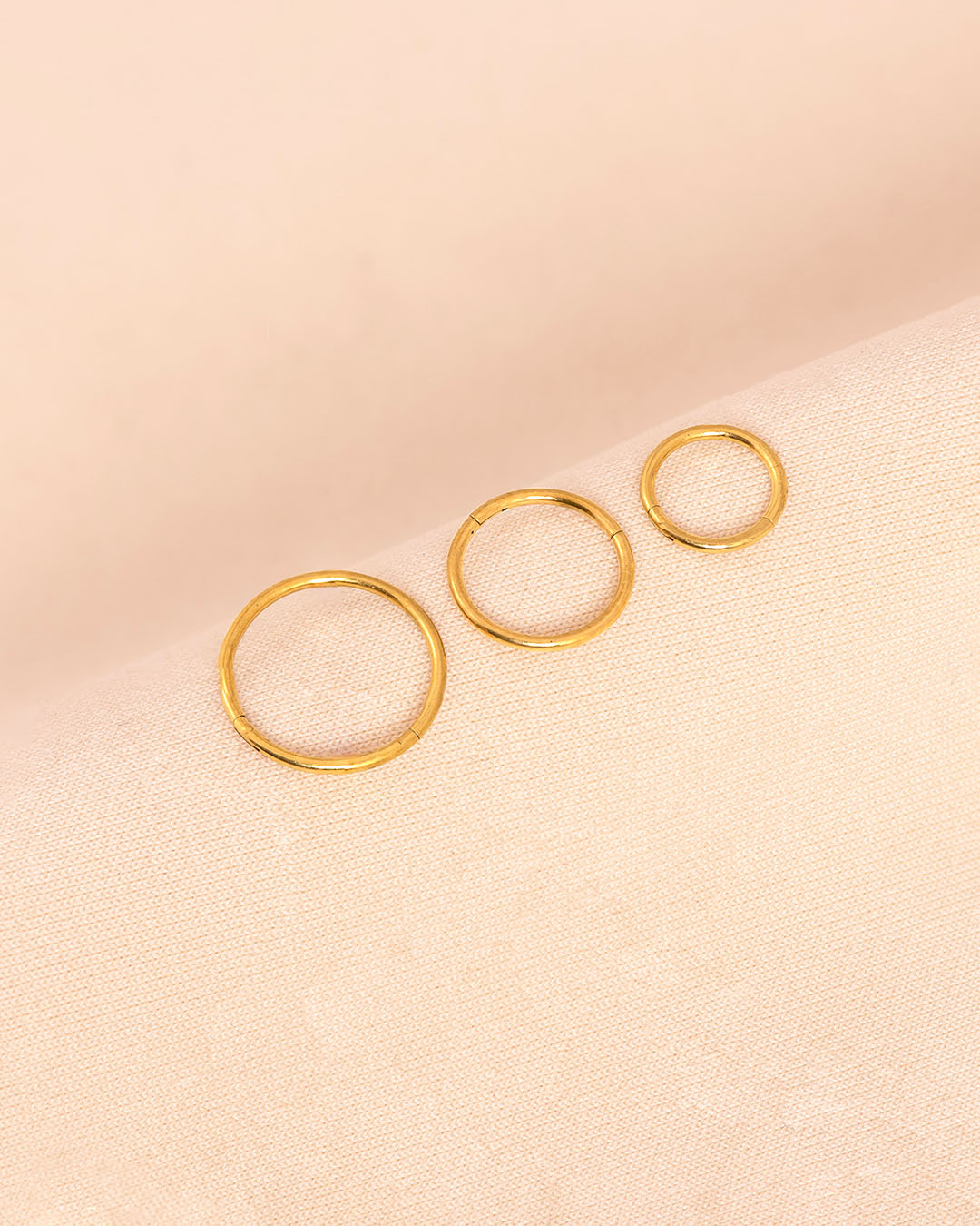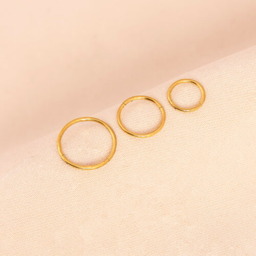 A slightly thicker polished hoop that offers a stronger presence while remaining comfortable for everyday wear. Designed to stand out, it works beautifully as both a helix ring and a statement nose ring.