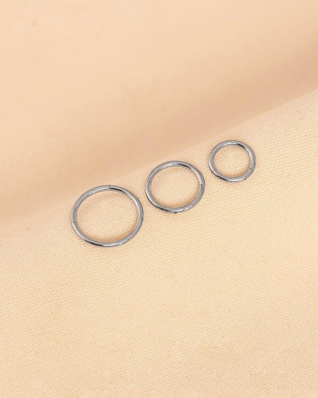 A slightly thicker polished hoop that offers a stronger presence while remaining comfortable for everyday wear. Designed to stand out, it works beautifully as both a helix ring and a statement nose ring.