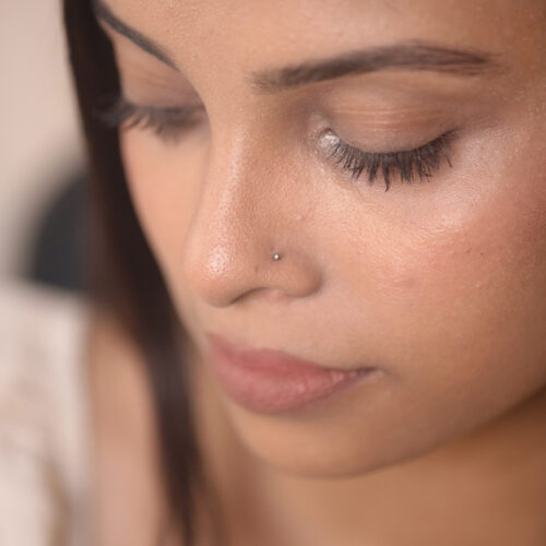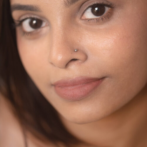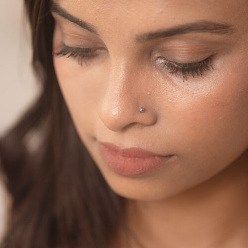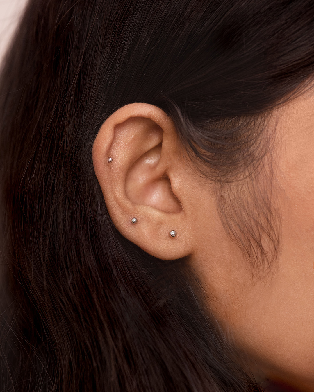 A polished, micro-sized metal sphere that sits flat against the skin. Minimal and understated, it works beautifully across the main lobe, upper lobe, helix, other upper ear piercings, or as a delicate nose pin.