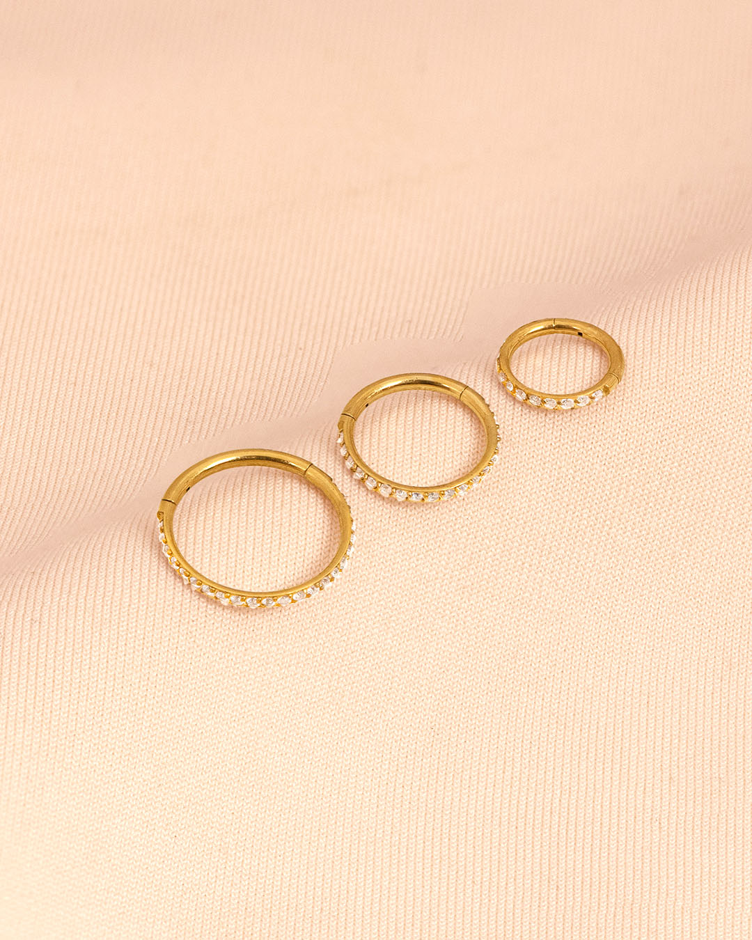A refined hoop accented with tiny clear stones engraved along the curve. Whether worn on the helix or as a nose ring, it adds just the right touch of shine.